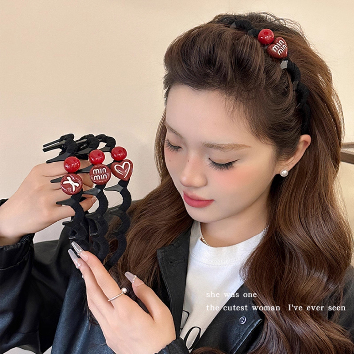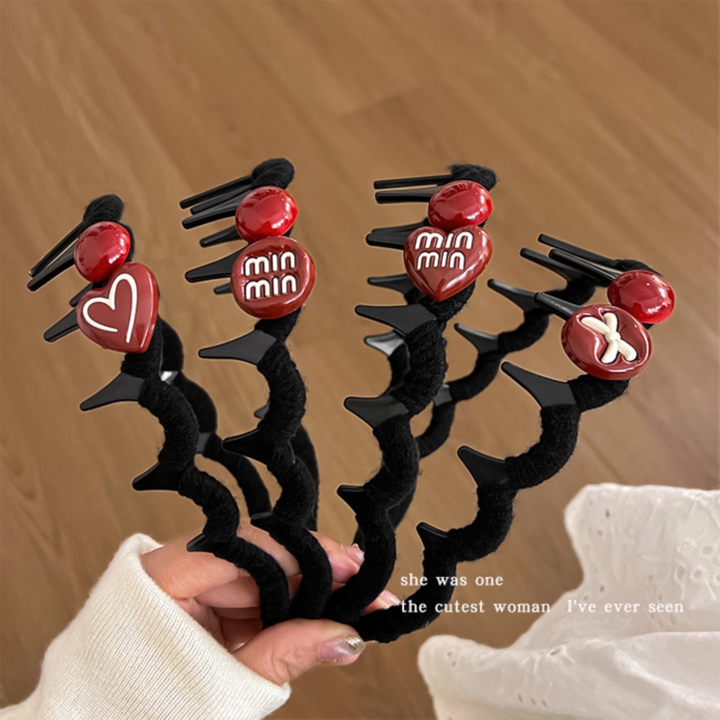 安可拉红爱心带齿波浪发箍女前额碎发发卡高颅顶蓬松防滑头箍发饰
