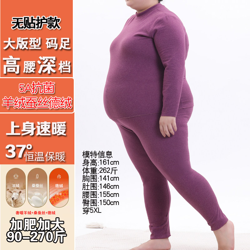 中领保暖内衣套装女中老年加肥加大德绒半高领加绒加厚秋衣秋裤冬