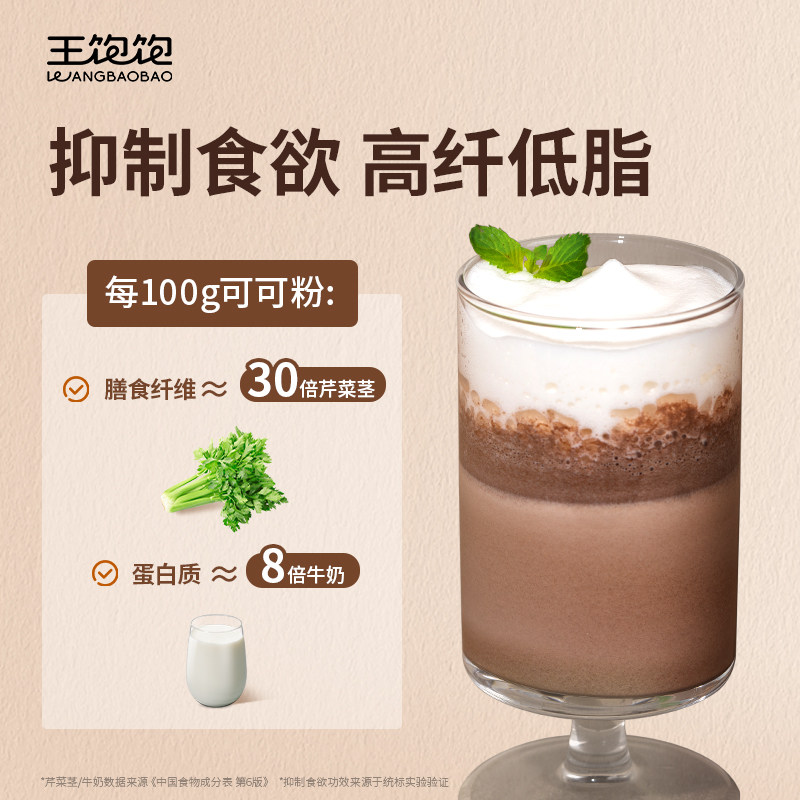王饱饱生可可粉未碱化天然烘焙专用隔夜燕麦碗冲饮热巧克力粉咖啡