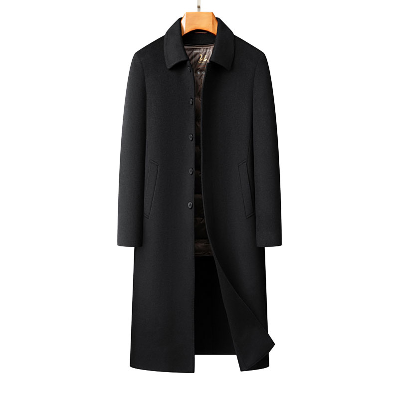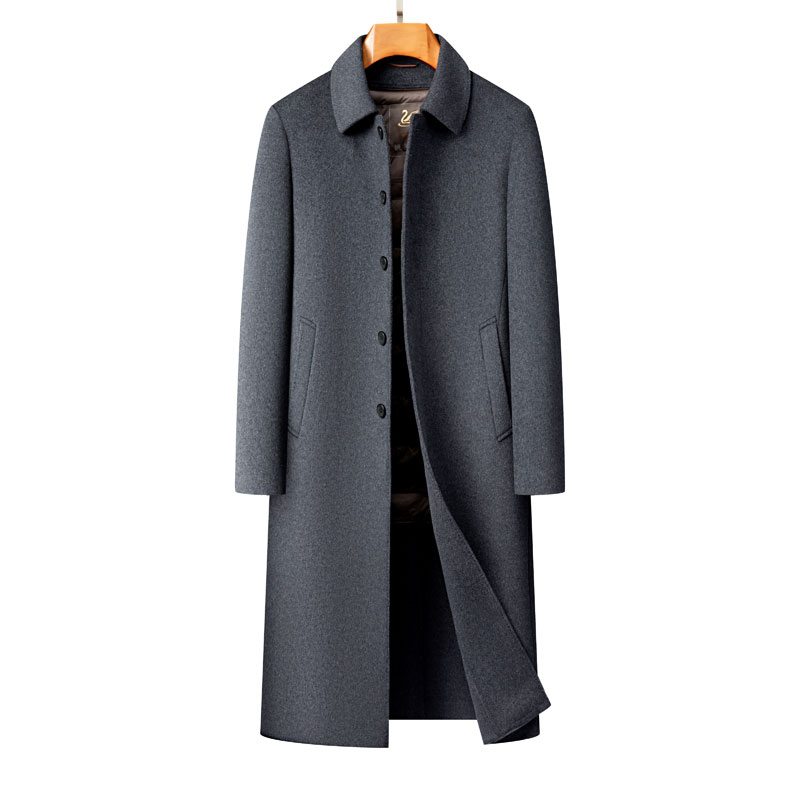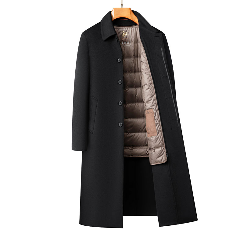 羽绒内胆可拆卸双面羊毛大衣长款过膝呢子风衣中年商务男士外套冬