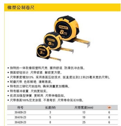 正品史丹利 套橡塑防滑 橡塑公制钢卷尺拉尺 3米 5米 8米