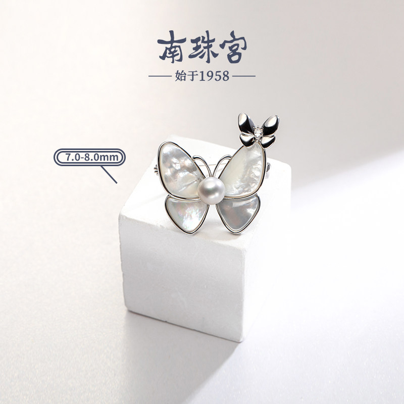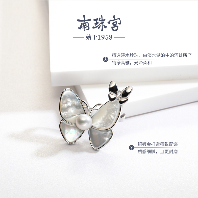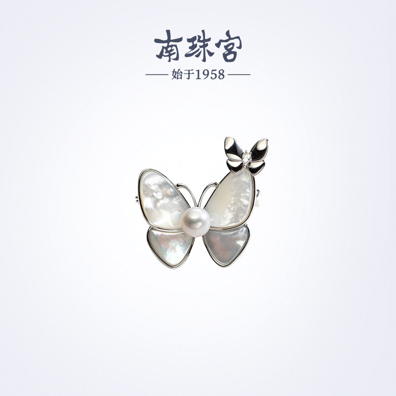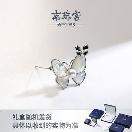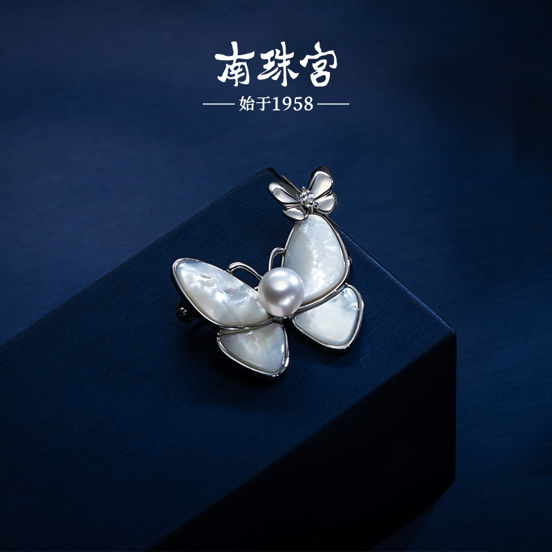 南珠宫离火 日常百搭 珠贝淡水珍珠蝴蝶胸针 C-Z004HD-Y[年货节]