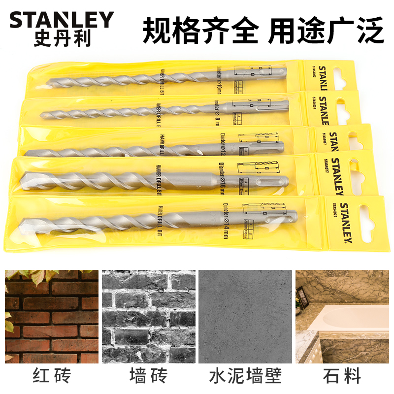 史丹利电锤钻头加长冲击钻头混凝土钻头穿墙四坑钻花圆柄两刃圆头