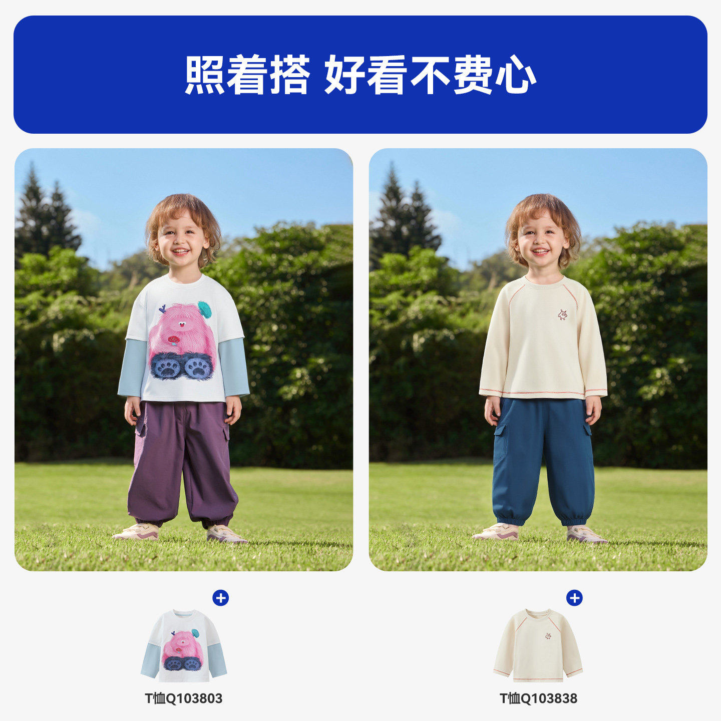 [速干吸湿防水]齐齐熊宝宝裤子男童梭织裤儿童冲锋裤2026新款长裤