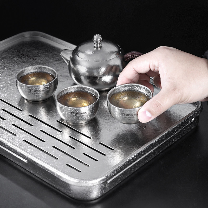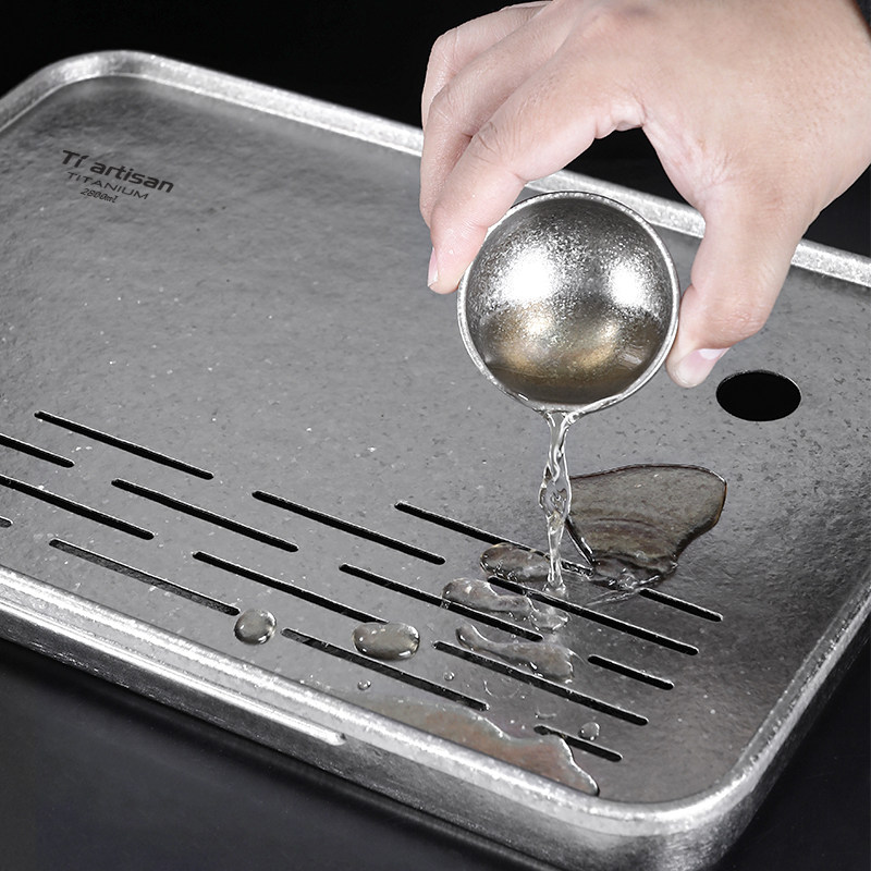 钛工匠纯钛方形茶盘户外便携大号茶台干泡台茶具配件纯钛加厚茶海