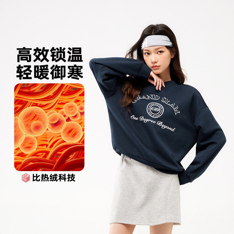 361运动卫衣女2025秋冬新款女士加绒保暖套头卫衣学院风印花上衣