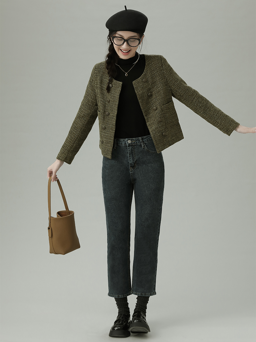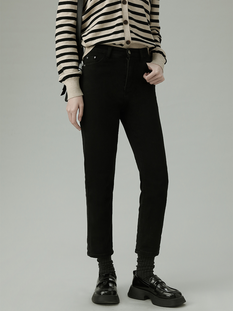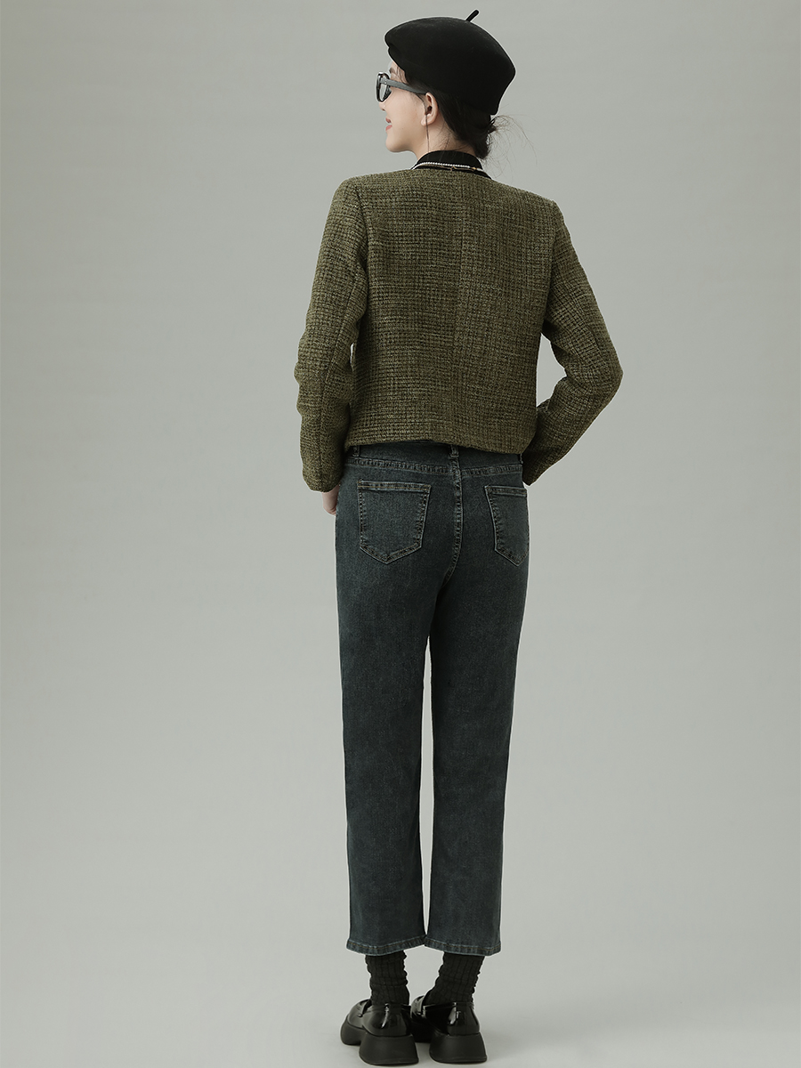 YOYOCOO春季复古高腰直筒牛仔长裤女修身显瘦小个子八九分烟管裤