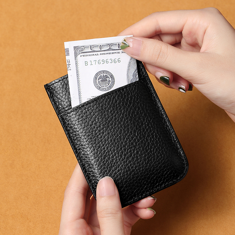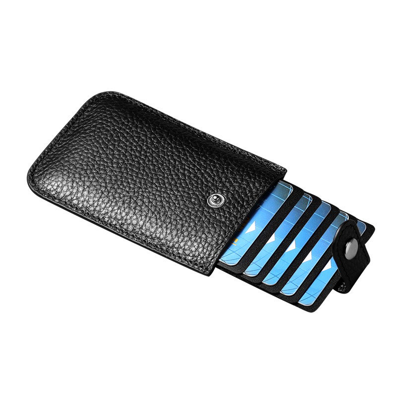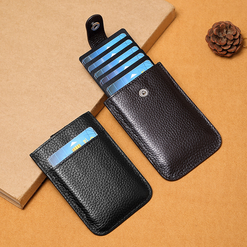 防盗刷防消磁真皮轻薄抽拉式卡包
