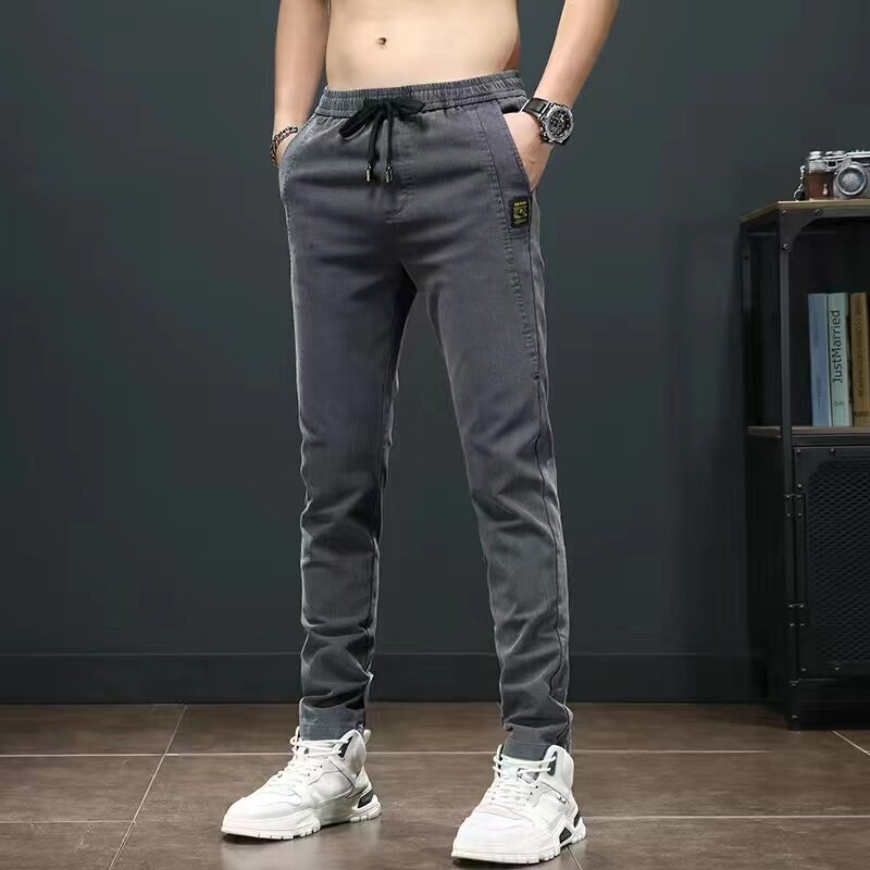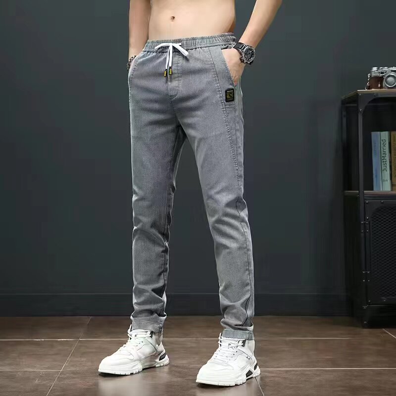 夏季工装休闲长裤子男士春秋款弹力直筒宽松潮流牛仔裤男款哈伦裤
