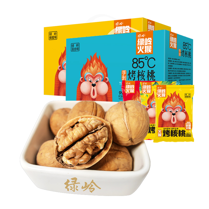 绿岭火猴 手剥烤核桃1150g蜂蜜五香草本味薄皮核桃坚果年货礼盒