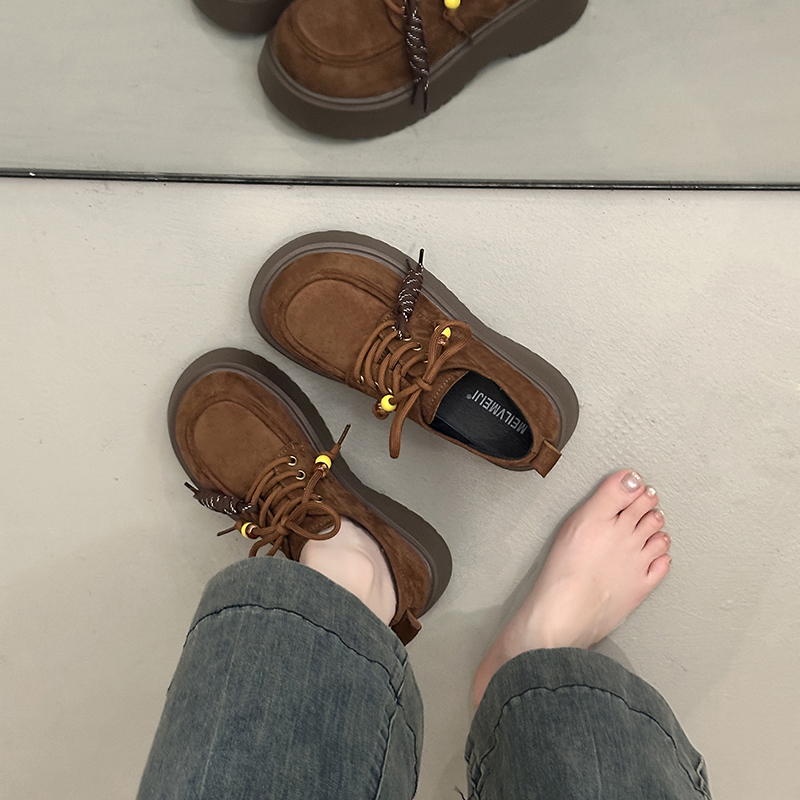 英伦风厚底增高小皮鞋女2025年秋季新款复古百搭jk配裙子系带单鞋