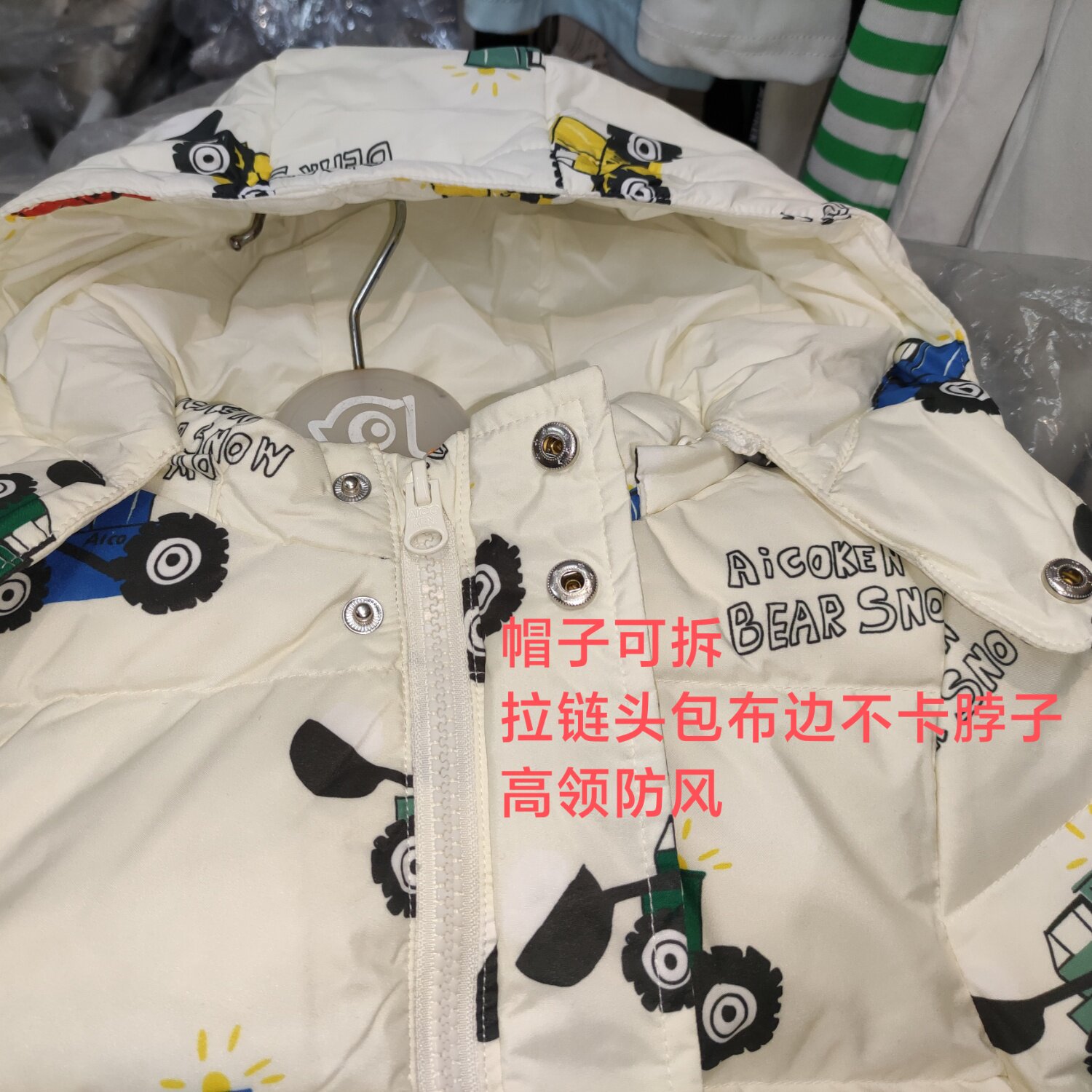 4.5折1爱儿健品牌童装1342312003男童冬有帽开胸拉链羽绒服帽可脱
