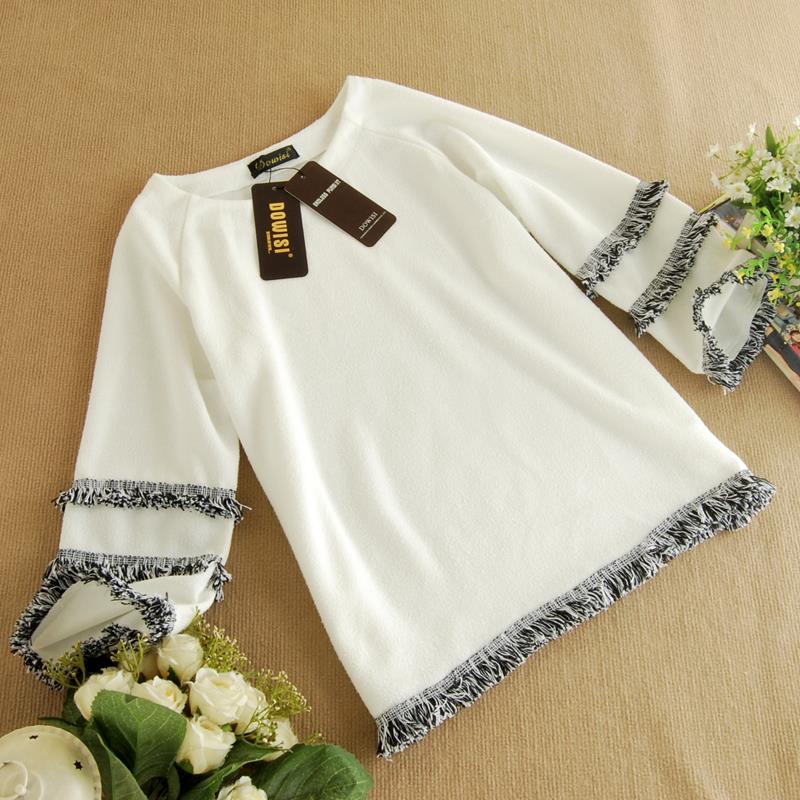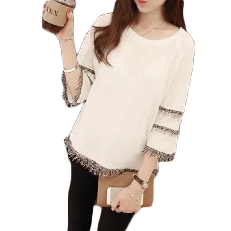 春秋女装胖MM宽松大码学生卡通七分袖纯色体恤上衣原宿百搭白t恤
