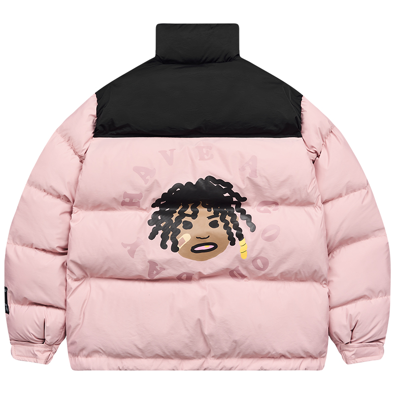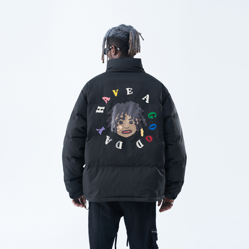 harsh and cruel 街头手绘卡通脏辫金牙小黑人保暖宽松立领棉服