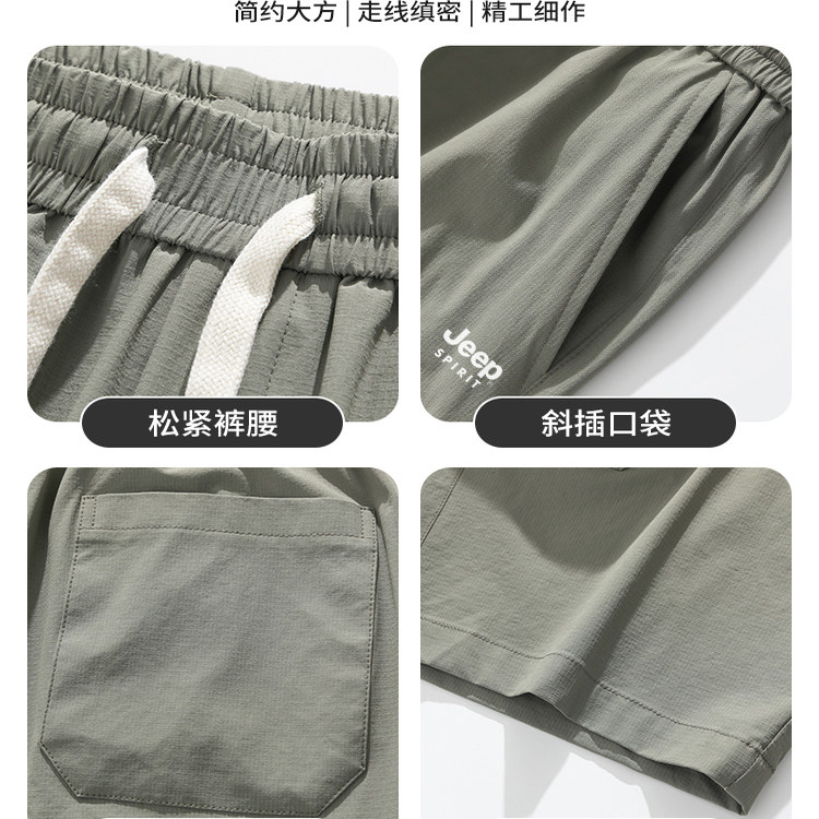 吉普LOGO夏季冰丝薄款七分裤男短裤宽松2025新款美式工装中裤休闲