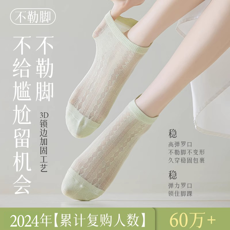 袜子女短袜夏季薄款纯棉抑菌防臭浅口绿色网眼透气船袜防滑不掉跟