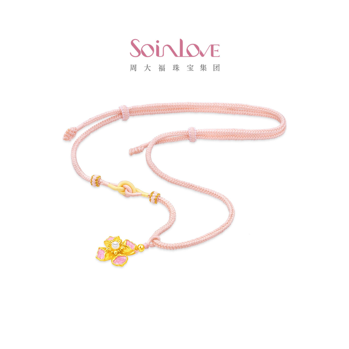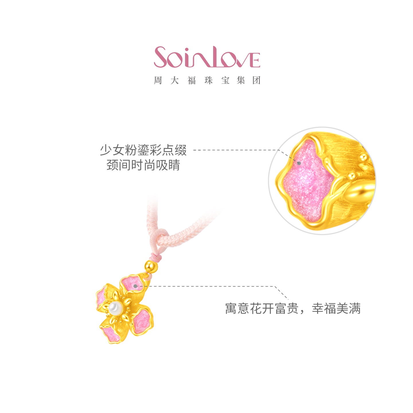 周大福SOINLOVE 蜜粉金十里红妆花容足金黄金珍珠吊坠圣诞礼物