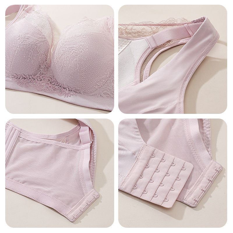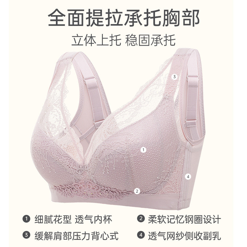 依曼丽内衣女蕾丝薄款记忆钢圈防下垂收副乳直立棉背心式文胸
