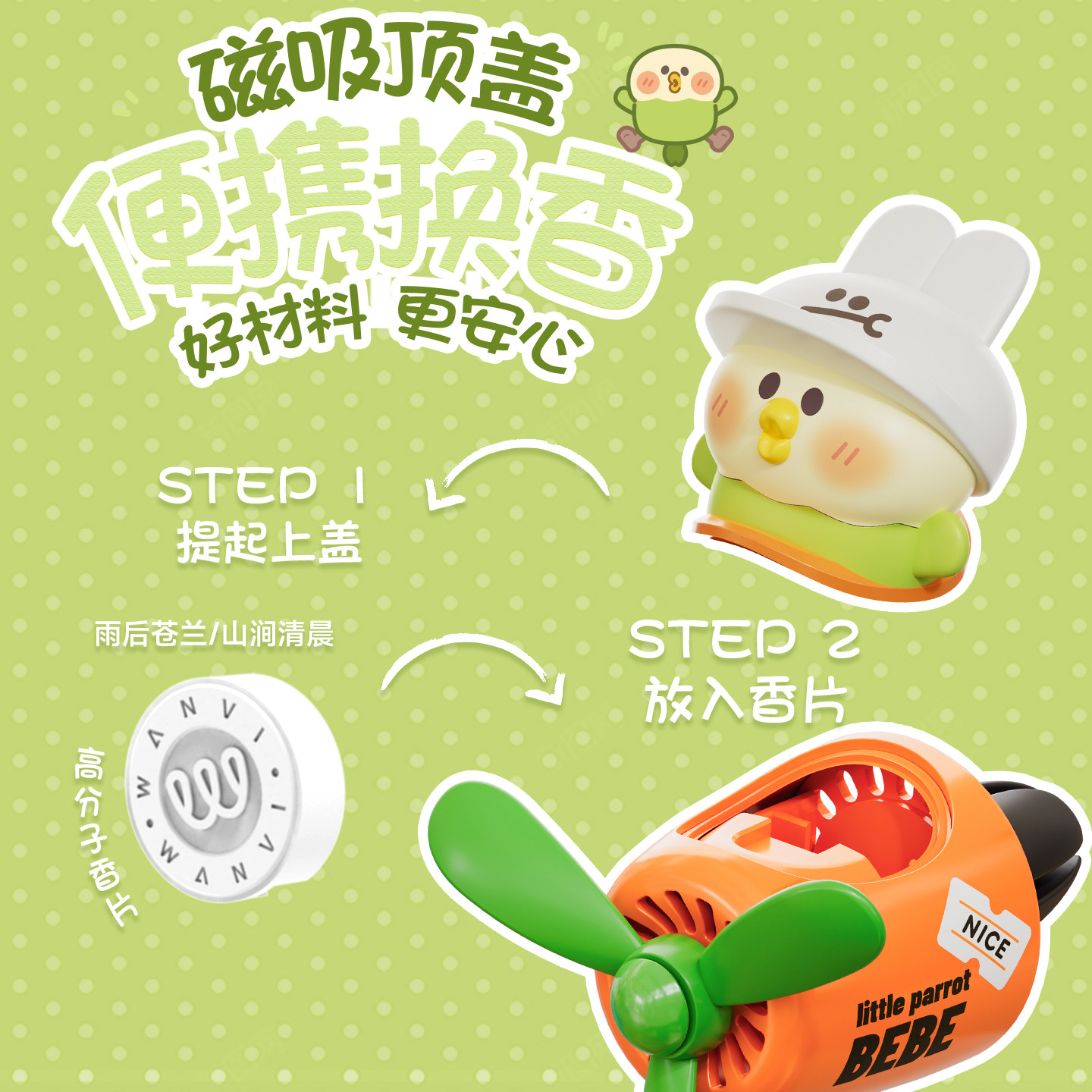 玩味小鹦鹉BEBE小飞机车载香薰水汽车空调出风口装饰2025新款摆件