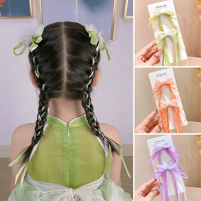 女童经典新中式浪漫雪纱蝴蝶结长飘带编发夹儿童裙子搭配飘逸发饰
