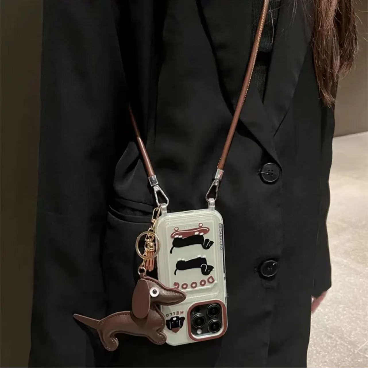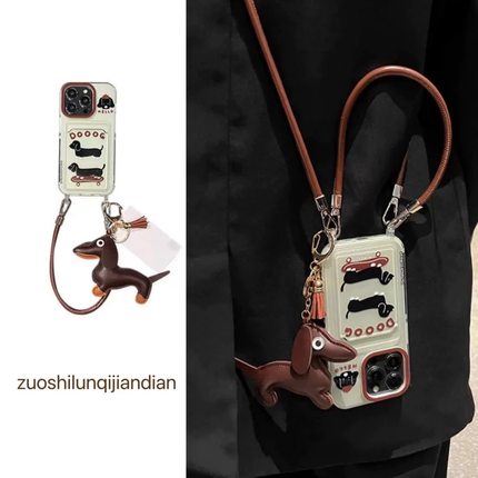 趣味棕腊肠狗适用三星s25edge手机壳s24ultra卡包s23+手绳s21fe卡通a05s/a17斜跨绳a17/a26/a35/a52s/a54/a56