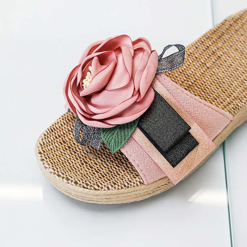 亚麻拖鞋女防滑轻便坡跟甜美优雅