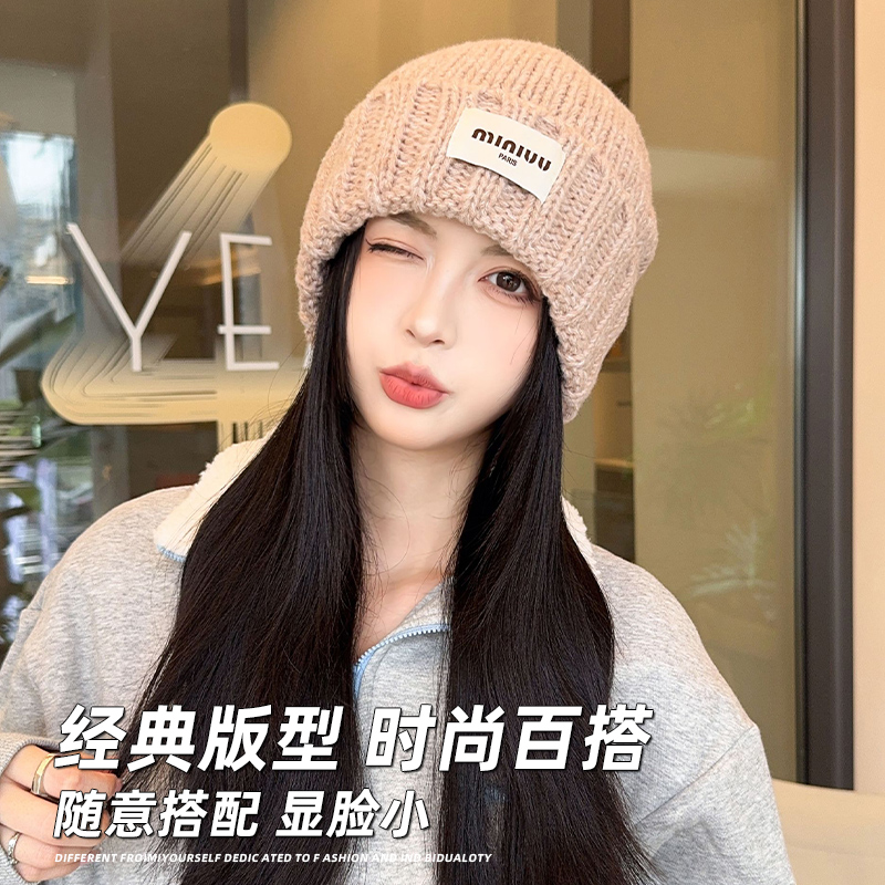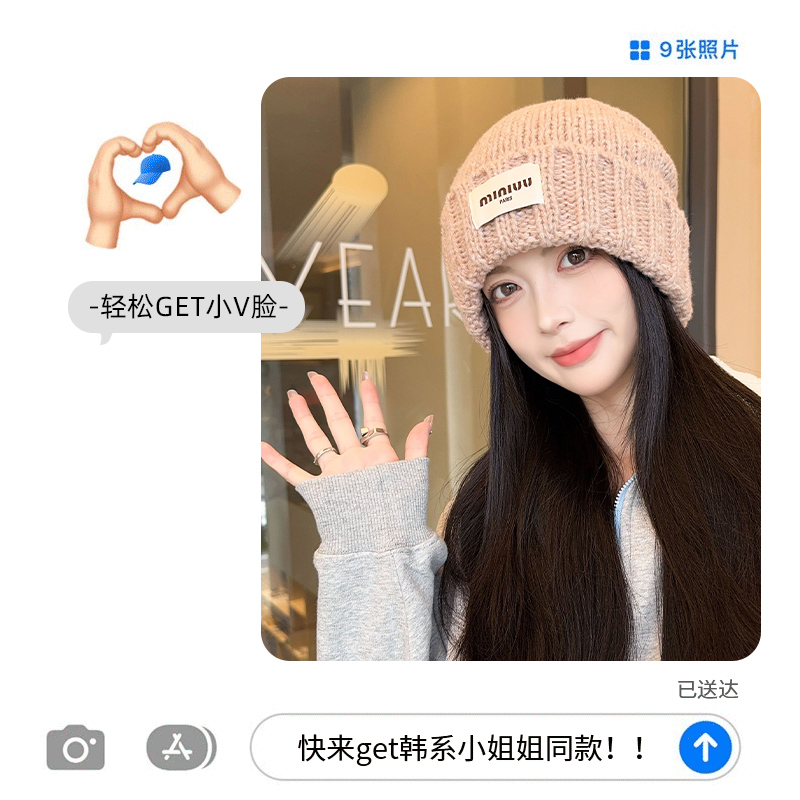 韩版复古针织帽女2025新款大头围显脸小毛线帽登山保暖护耳包头帽