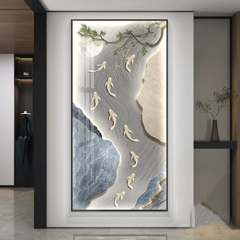 高级感入户正对门挂画玄关装饰画九鱼图客厅过道走廊尽头壁画大气