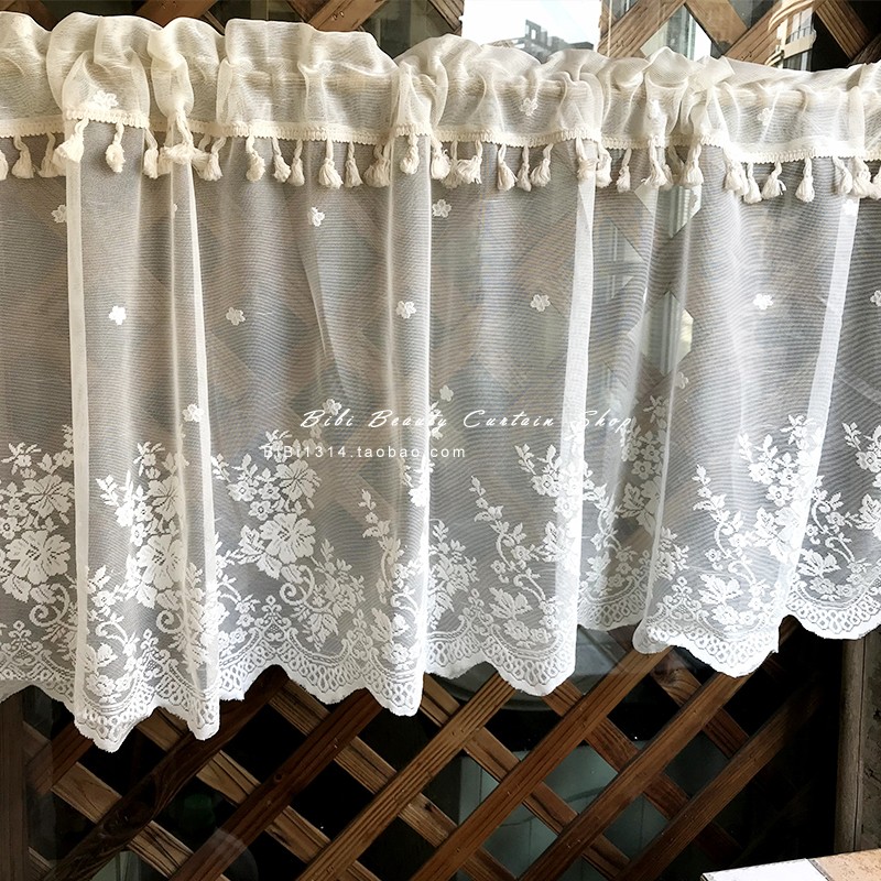 免打孔韩式公主经编米色蕾丝半透明门帘厨房半帘咖啡帘装饰帘定制