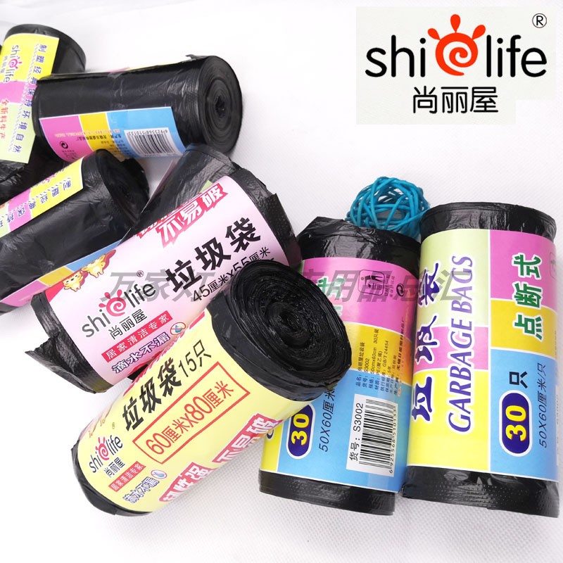 尚丽屋45*55/50*60/60x80加厚垃圾袋黑色连卷清洁袋平口袋实惠