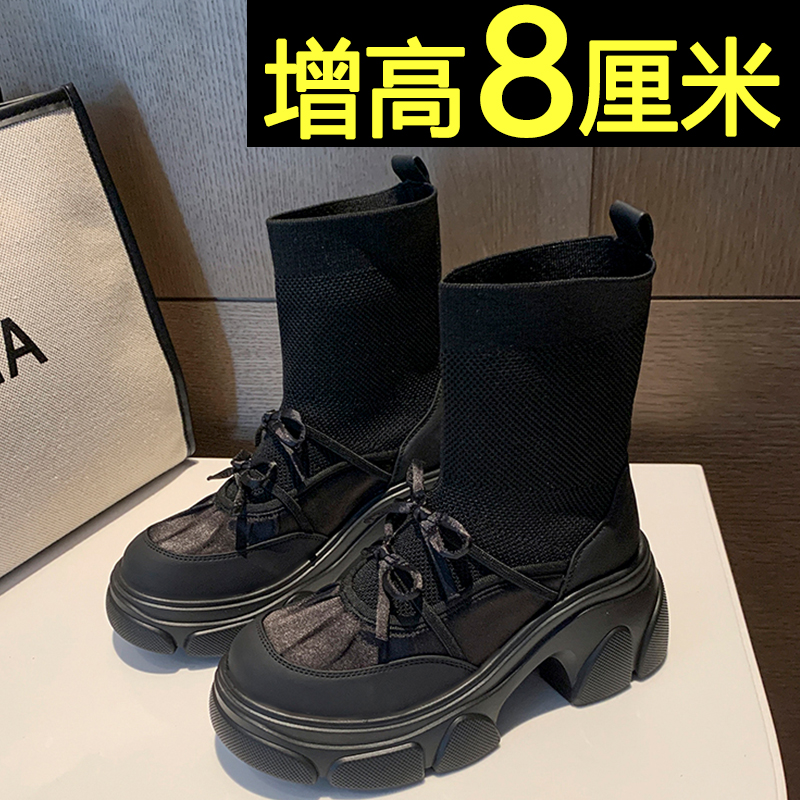 厚底高帮袜子鞋女2025新款秋季内增高弹力靴时尚百搭飞织瘦瘦短靴