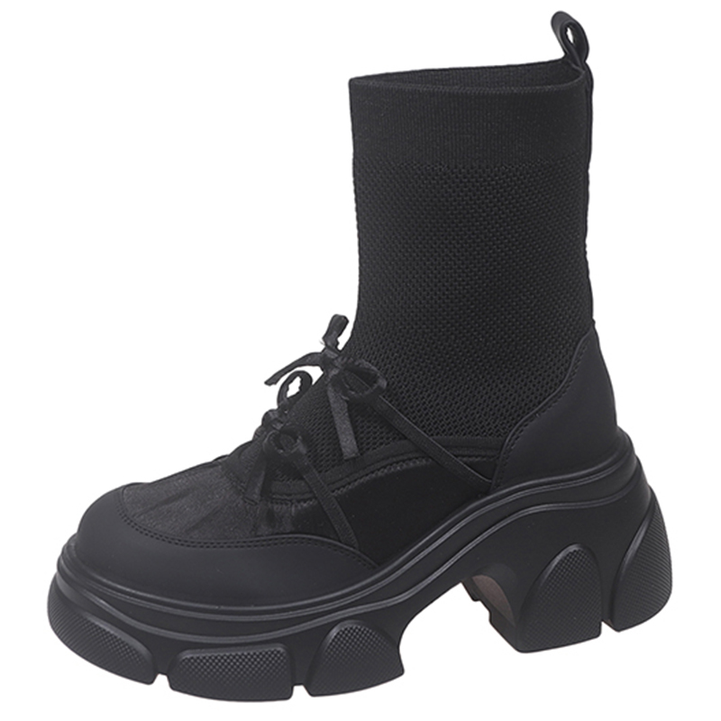 黑色弹力飞织鞋内增高厚底老爹鞋