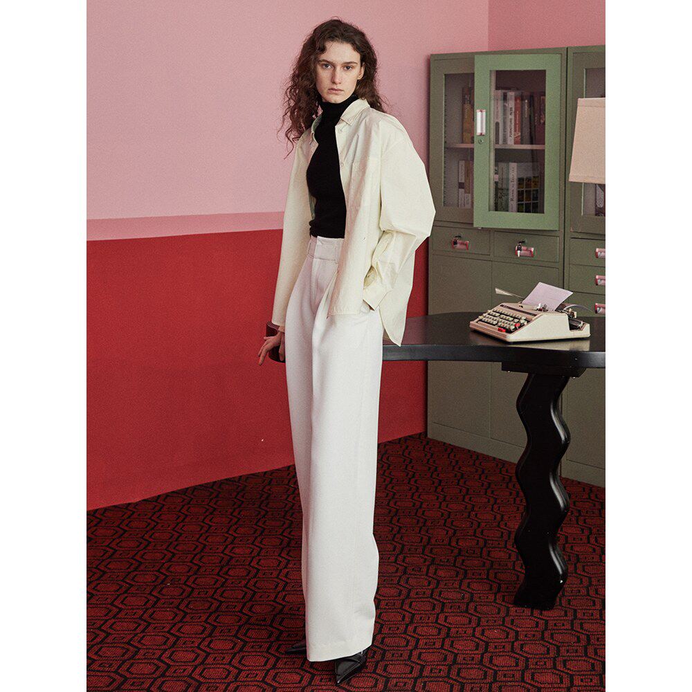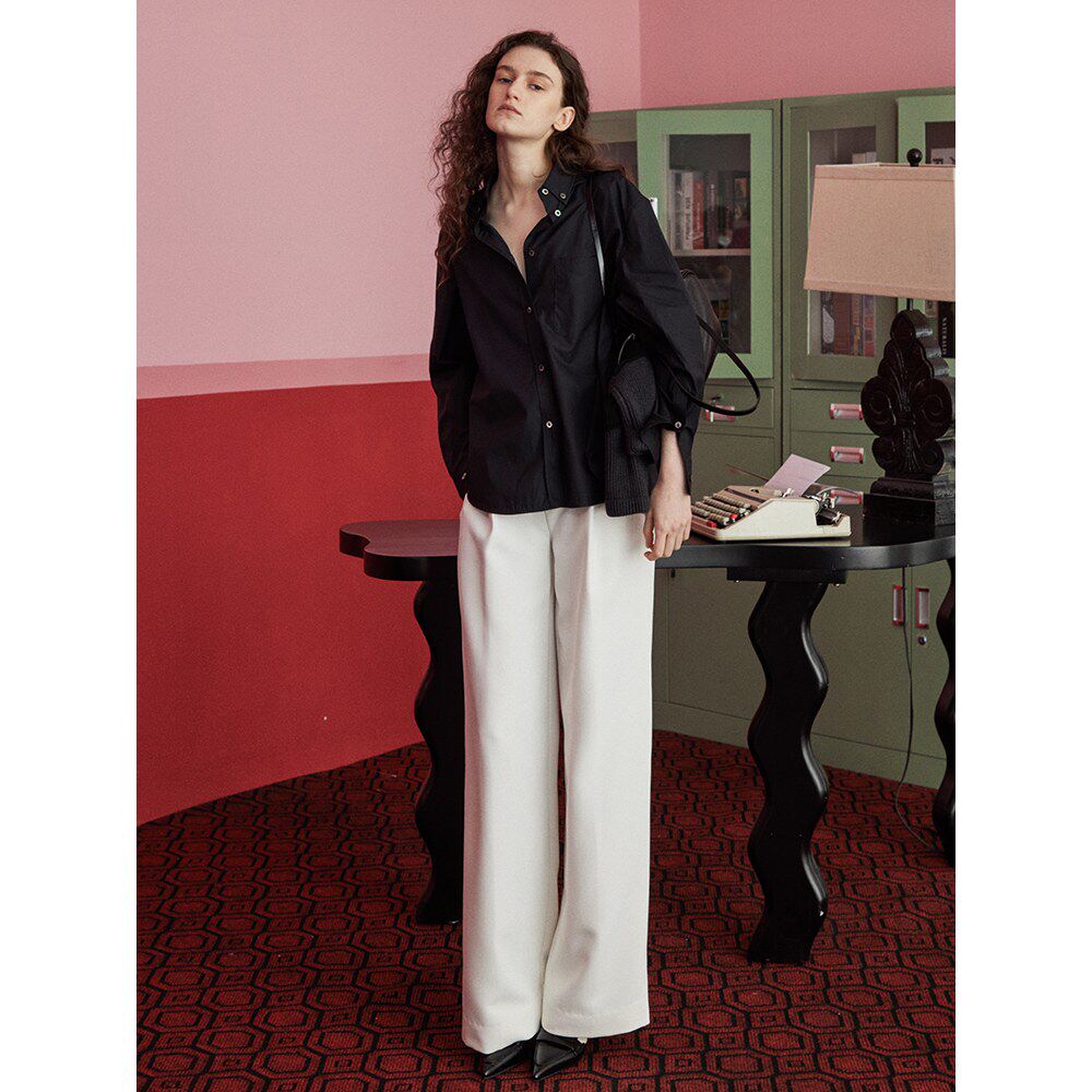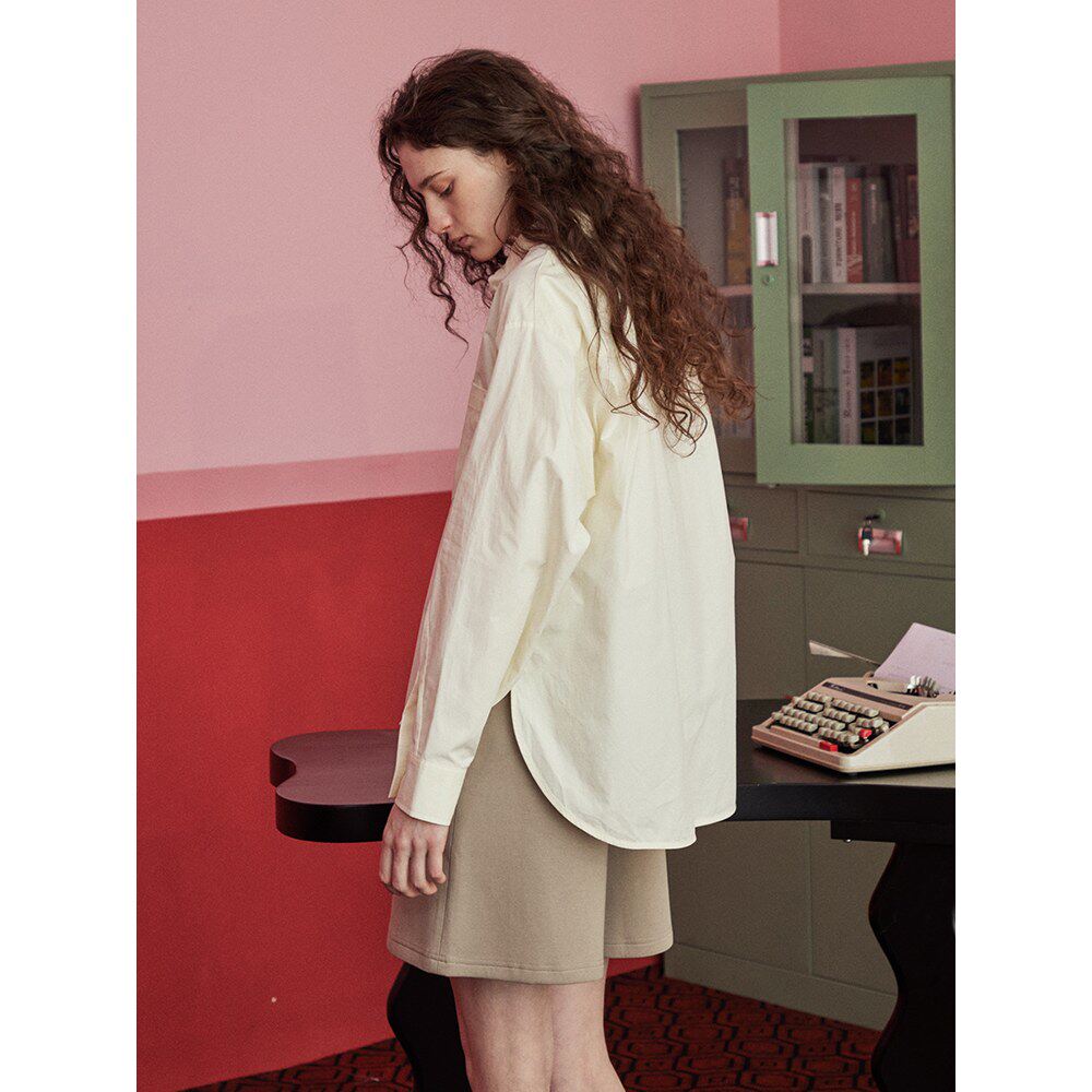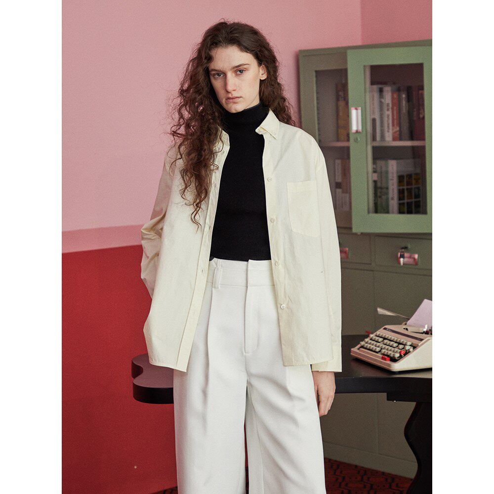 peur衬衫女出口意大利纯棉宽松双色长袖简约廓形纯色上衣原创简约