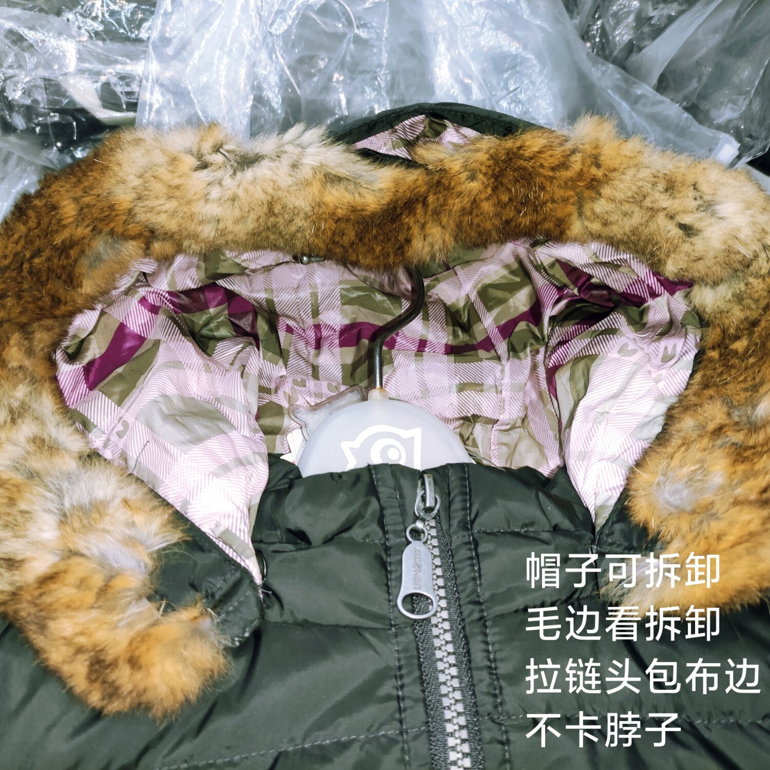 3.9折1爱儿健童装16447465女童冬有帽开胸拉链中长款羽绒服帽可脱