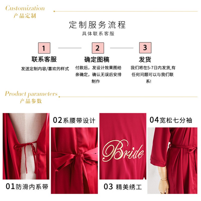 睡袍制作LOGO女春夏女士睡衣浴袍新娘伴娘晨袍休闲秋冬家居服定制
