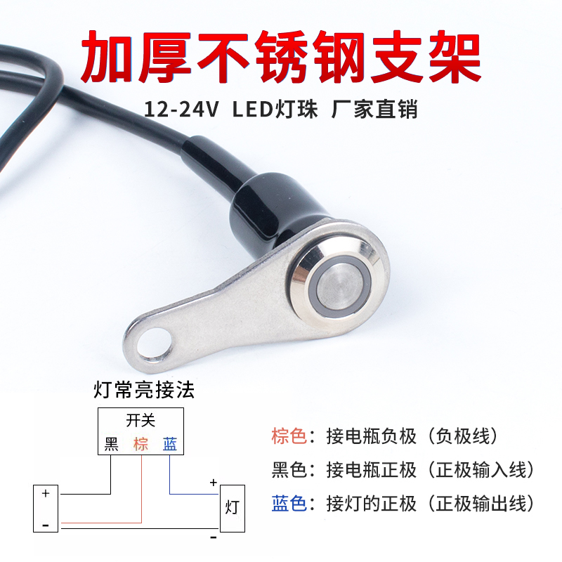 电动车摩托车双闪改装射灯开关汽车喇叭带灯断电控制金属按钮防水