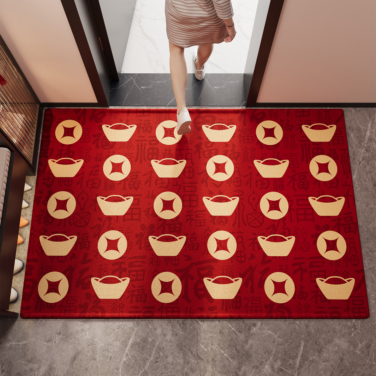 红色马年入户门地垫防滑玄关大门口2026新款进门脚垫子可定制地毯