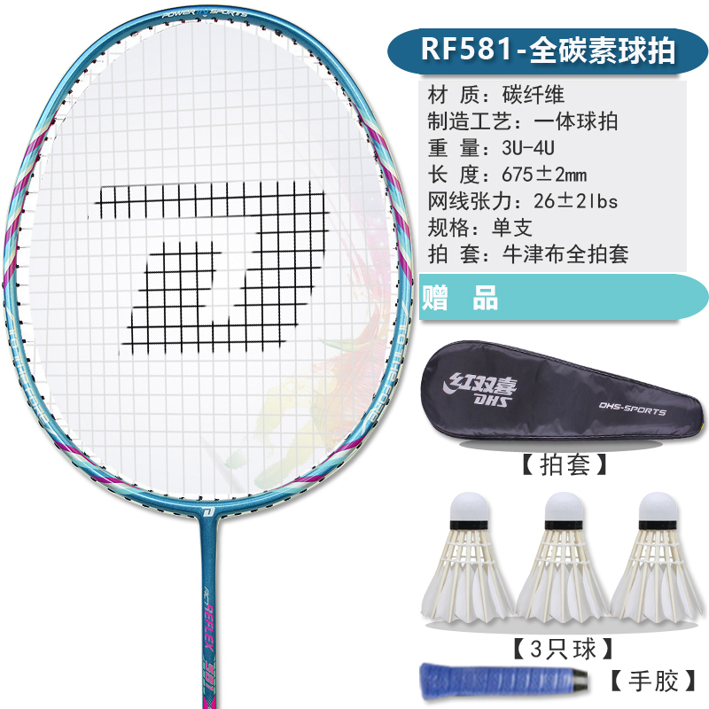红双喜羽毛球拍全碳素锐风进攻型超轻成品带线中考单支RF581/582