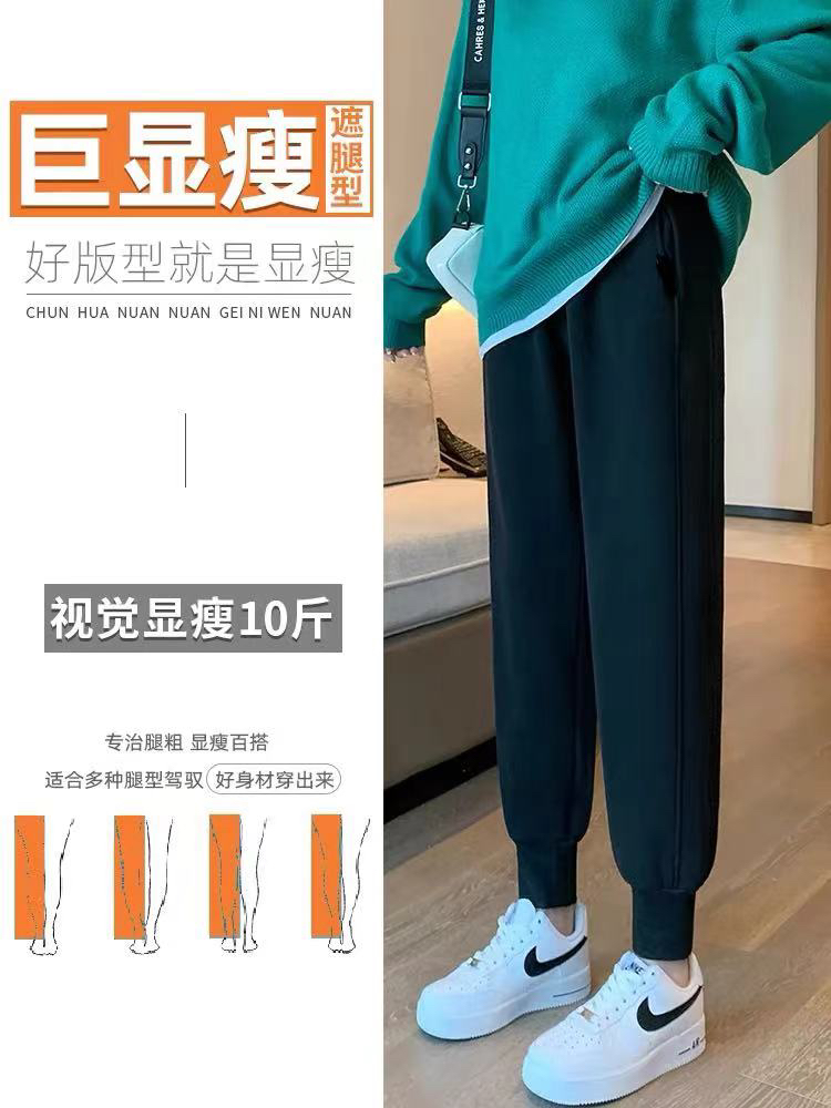 【好物】运动裤男女同款加绒加厚纯棉卫裤款宽松束脚小个子哈伦裤
