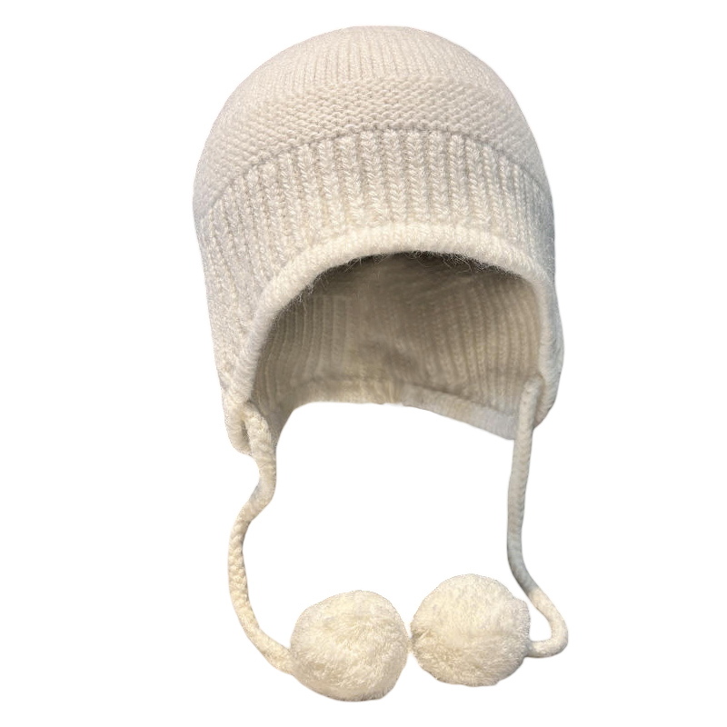 白色针织毛线帽子女秋冬新款百搭保暖防寒毛球护耳帽显脸小套头帽
