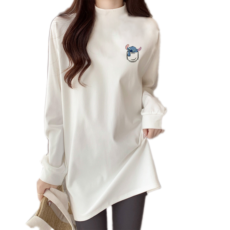 秋冬季加绒加厚半高领内搭打底衫女中长款叠穿卫衣长袖t恤上衣服
