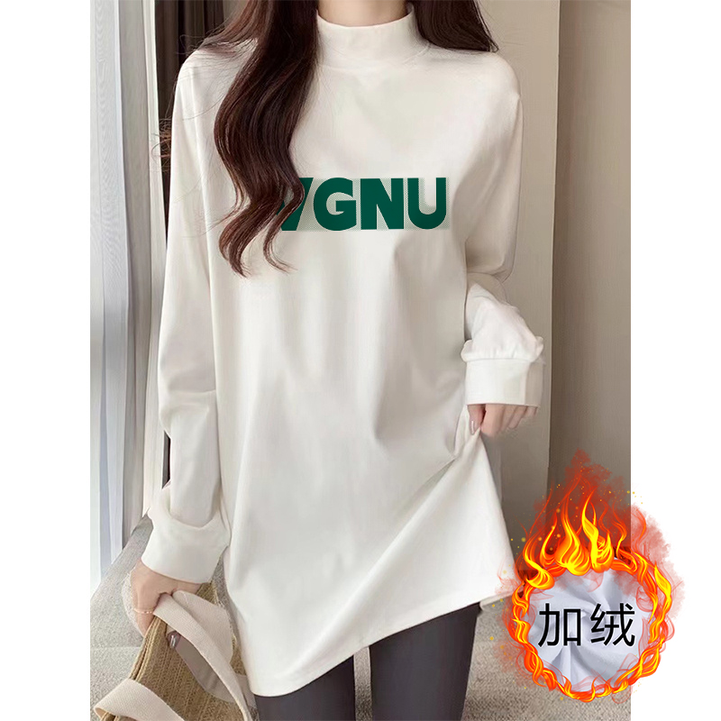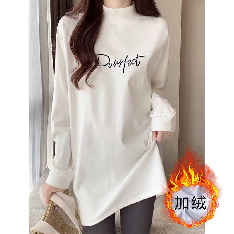 秋冬季加绒半高领中长款打底衫女