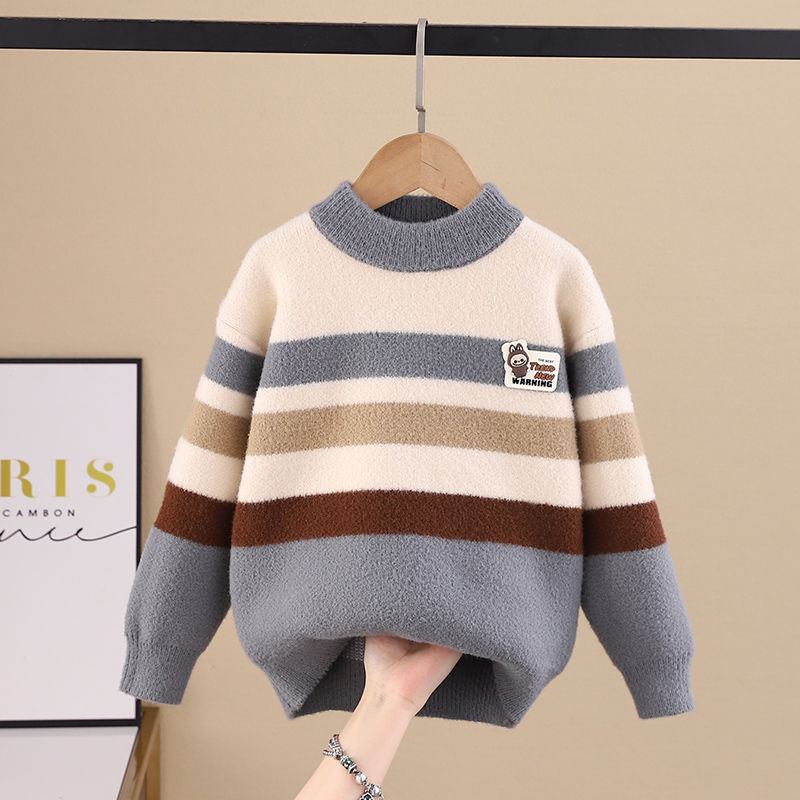 男童秋冬毛衣加厚2025新款条纹针织衫儿童宝宝套头针织衫洋气打底