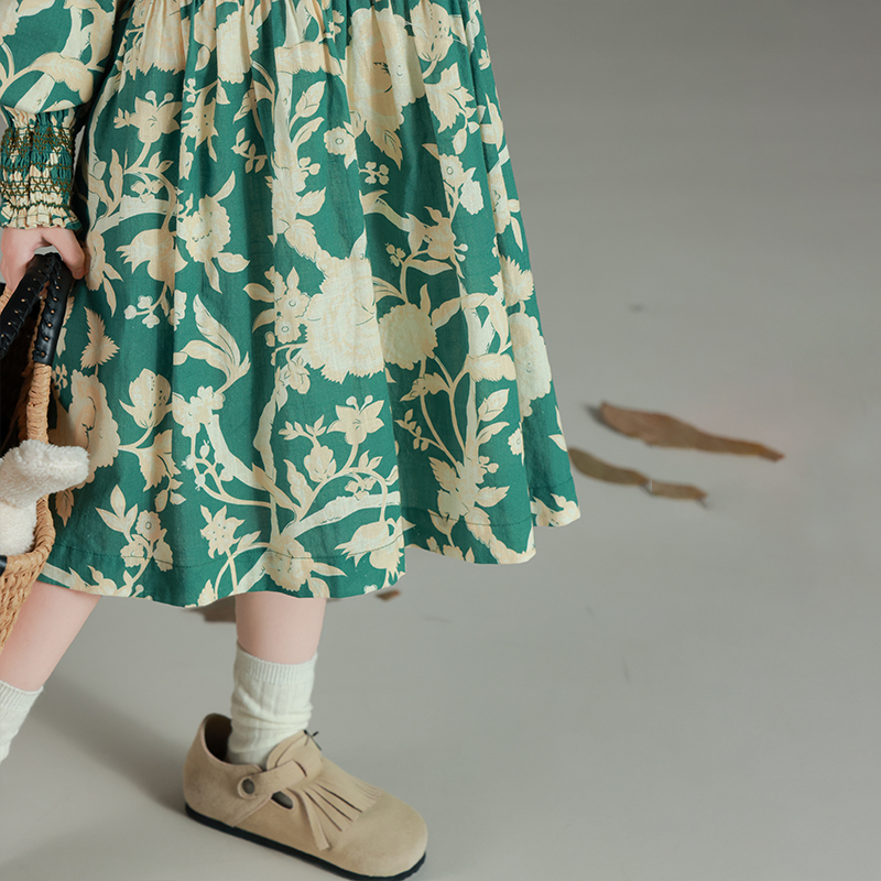 utouto大耳象女童花朵打揽连衣裙2025秋季新款宝儿纯棉泡泡袖裙子