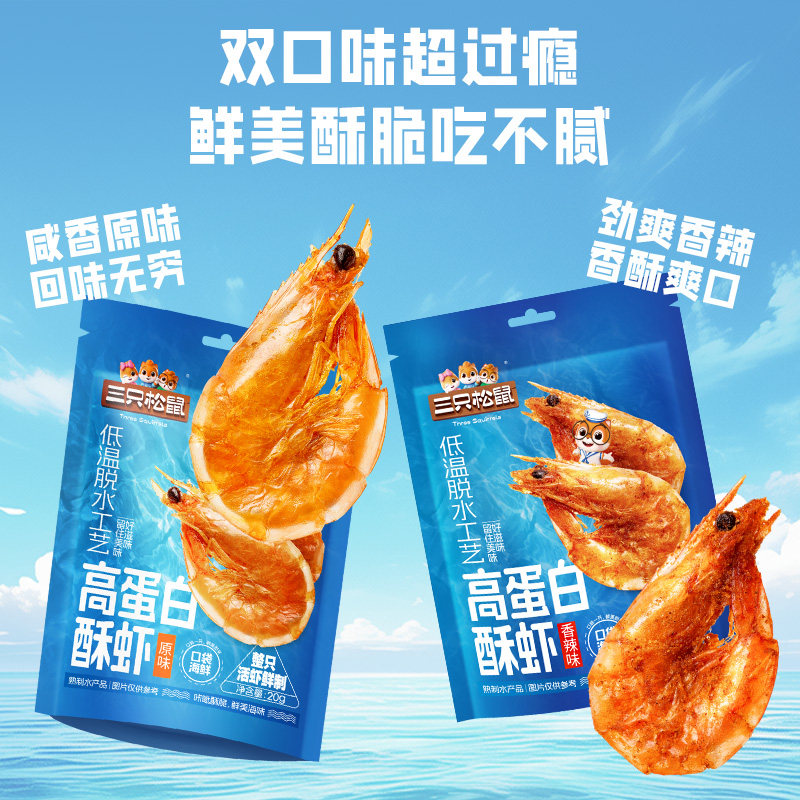 三只松鼠_高蛋白酥虾即食虾小包装解馋高钙高蛋白虾仁酥零食小吃