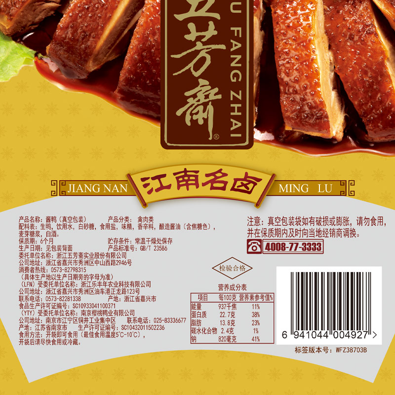 五芳斋腊味卤味酱鸭酱板鸭鸭腿鸭子老字号真空包装卤味熟食品即食