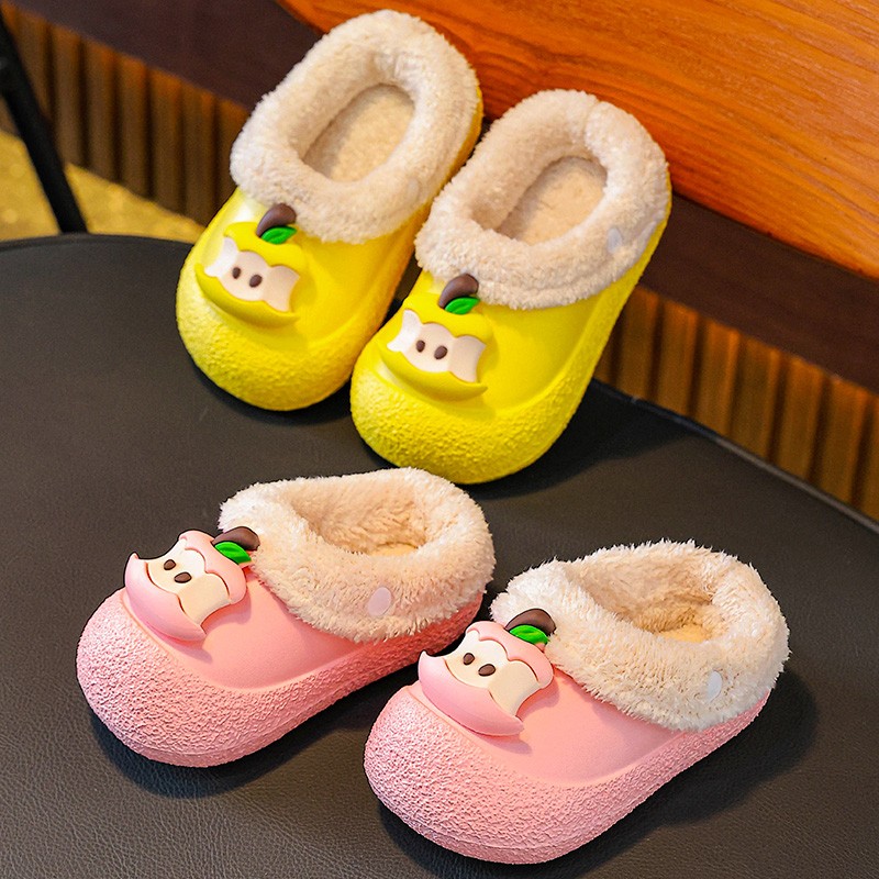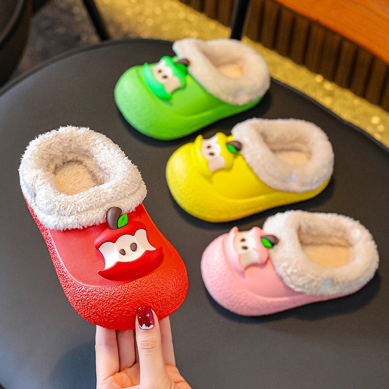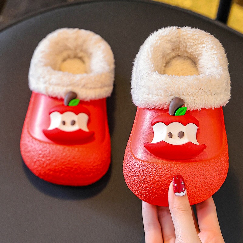 苹果儿童棉拖鞋男童秋冬季新款女童小孩室内居家保暖防滑防水棉鞋