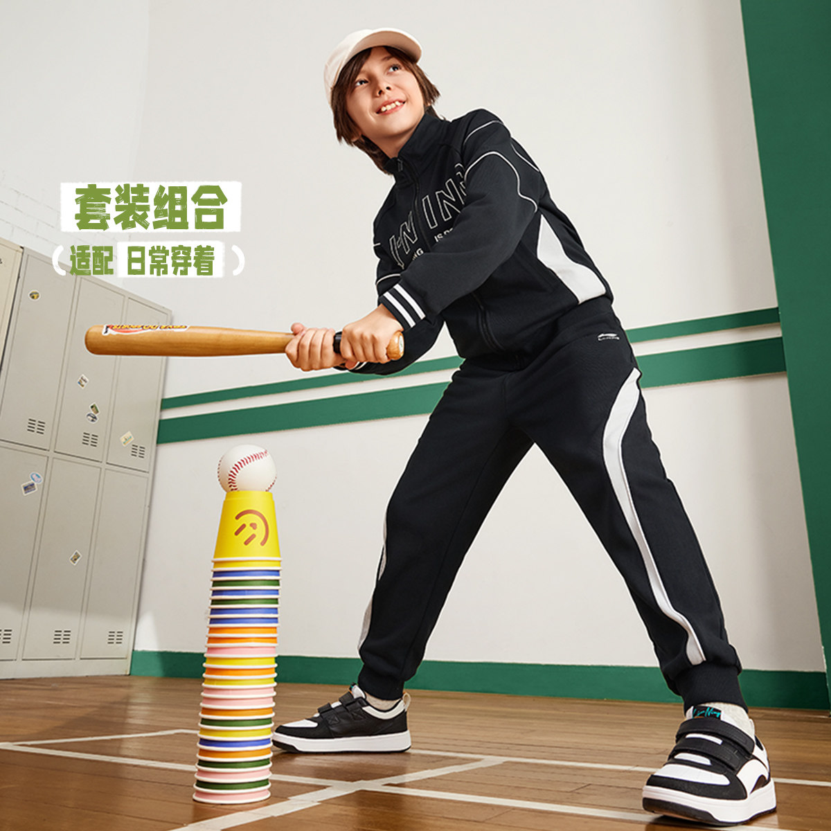 李宁童装套装男女小大童运动生活系列卫衣卫裤春季休闲针织童装