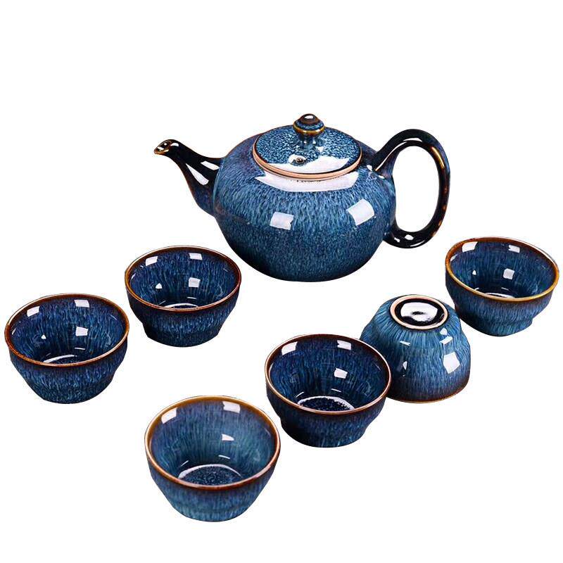 陶瓷功夫茶杯具套装家用中式饭厅泡茶壶带托 托盘窑变覆古冷热冷