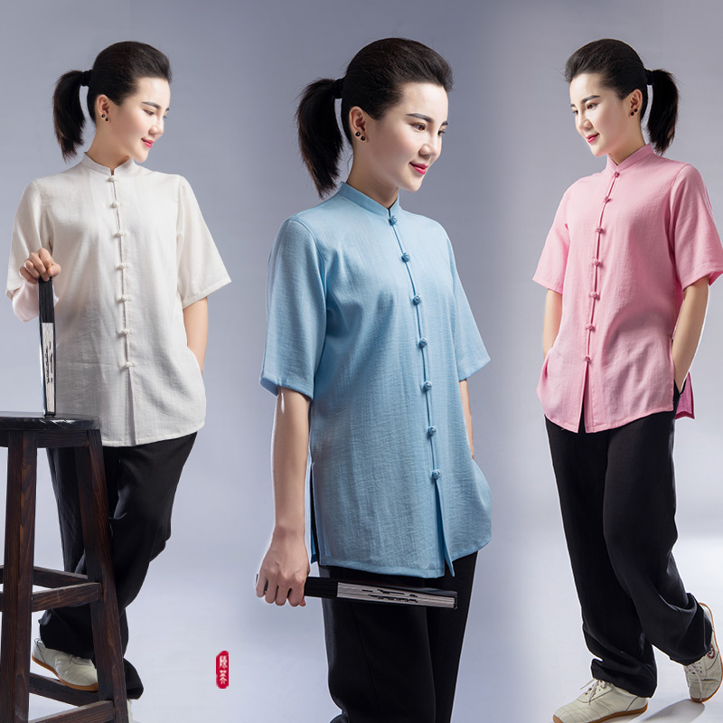 2025春夏季太极服男女薄锦麻中国风武术表演晨练功太极拳服装短袖